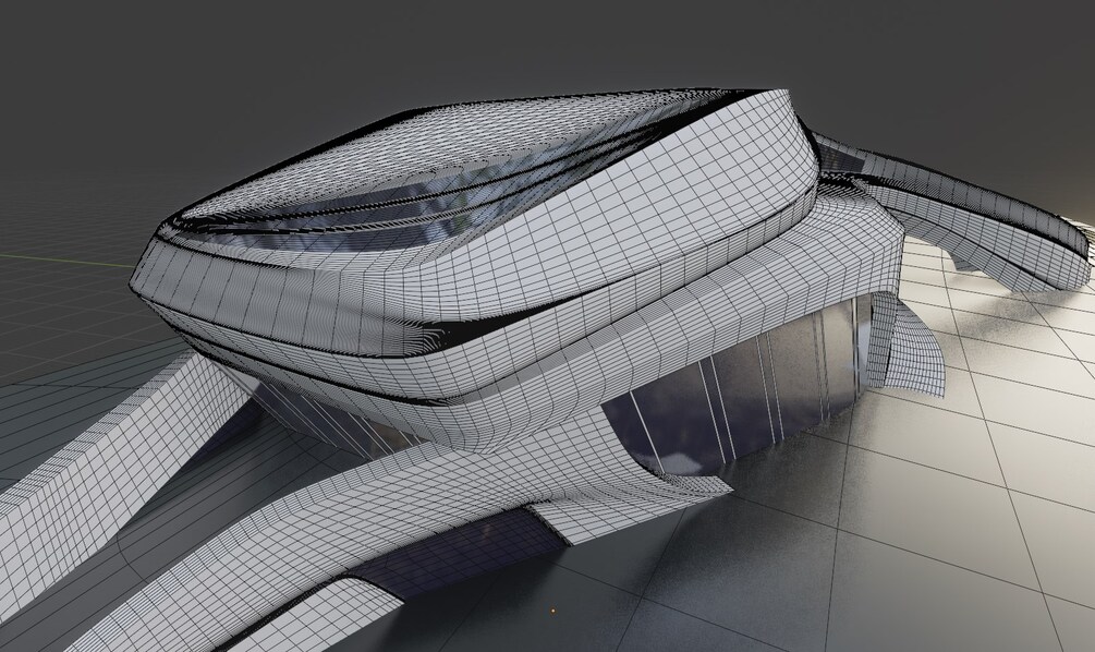 Modelled from reference images and satellite imagery using only quads, with all loop cuts intact.