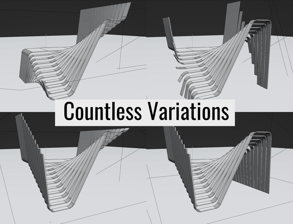 The stair can be adapted in many different ways to create multiple specific instances suitable for the spaces that the stair would need to be inserted.