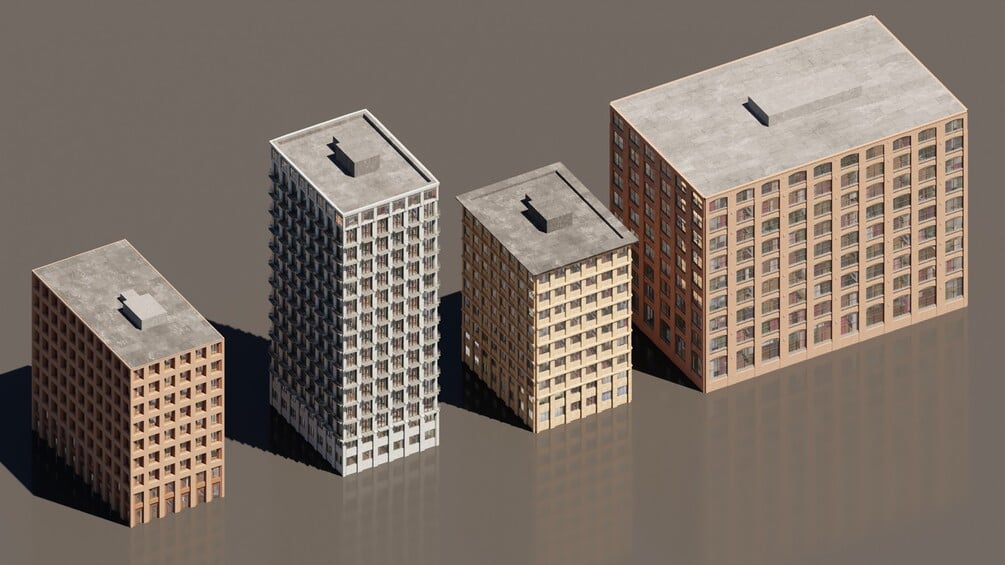 Hi and thanks for checking out this product. As an architect who constantly needs to generate large urban environments, I wasn't satisfied with the building models available for generating cities. They are either too expensive, too detailed, too specific, or too simple and bland. So I decided to start creating my own city packs which I am happy to share with you. The collection will continue to grow and I am happy to take recommendations for new packs as well!
